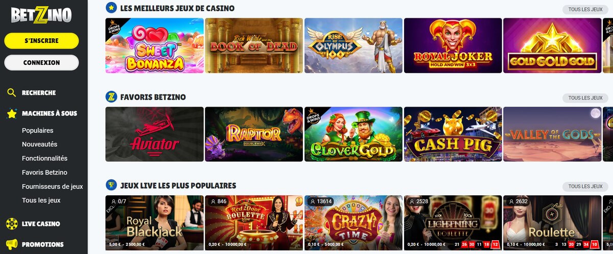 Betzino propose une large sélection de jeux, allant des machines à sous aux jeux de table en passant par les jeux en direct. Le site est constamment mis à jour avec les dernières sorties et offre également des promotions régulières pour offrir une expérience toujours plus excitante à ses joueurs.